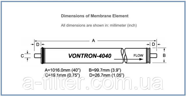 Специфікація мембран зворотного осмосу Vontron 11-4040: