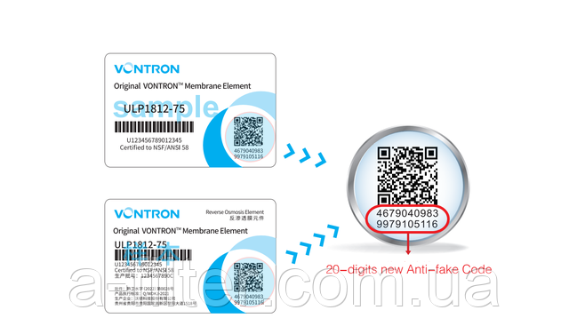 Переконатися чи справжня мембрана Vontron за 9-ти значним кодом можливо за посиланням ПЕРЕВІРКА.
